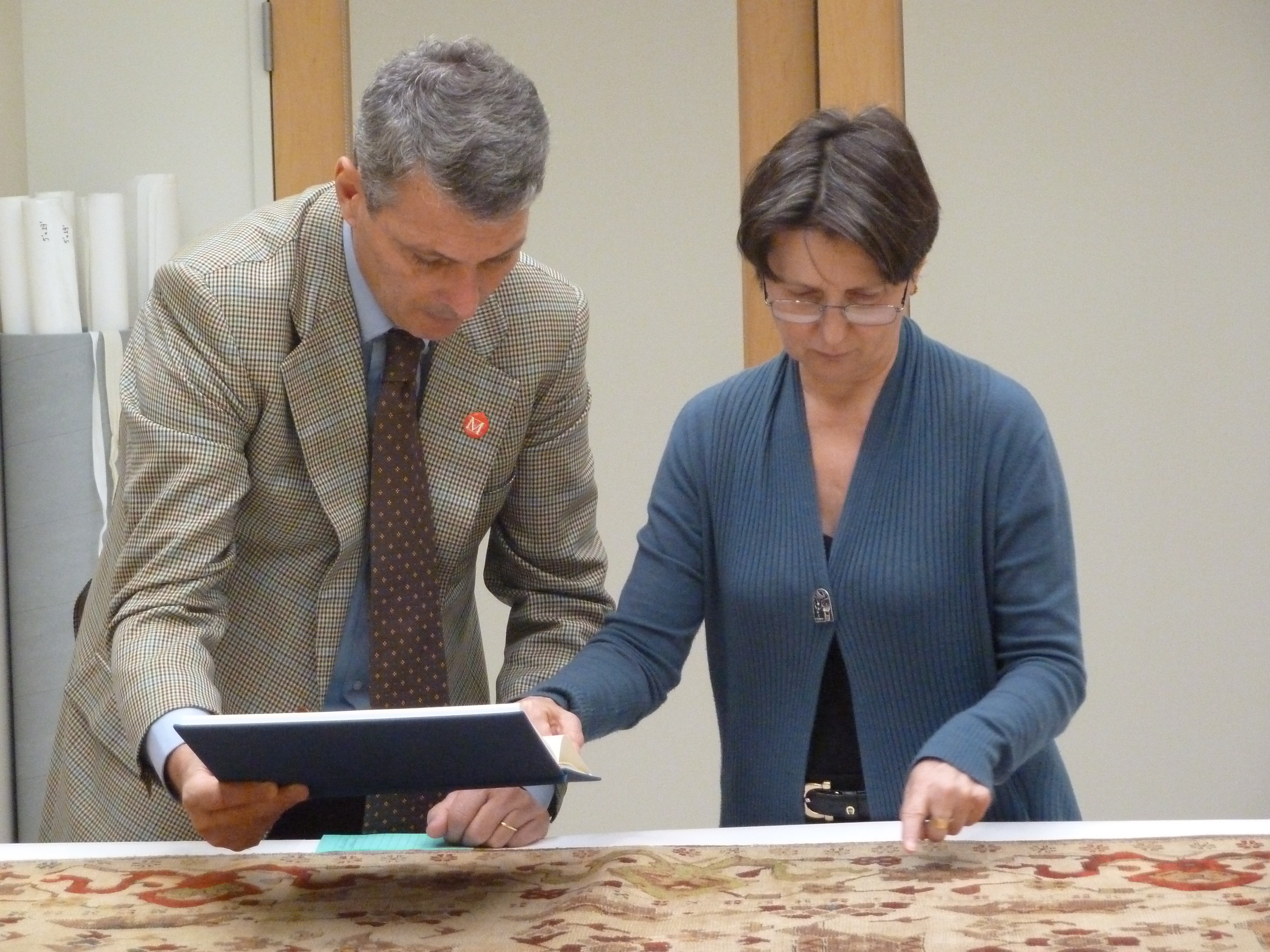 Discussing Tuduc fakes with Florica Zaharia, Conservator in Charge, Textile Conservation Department, MET