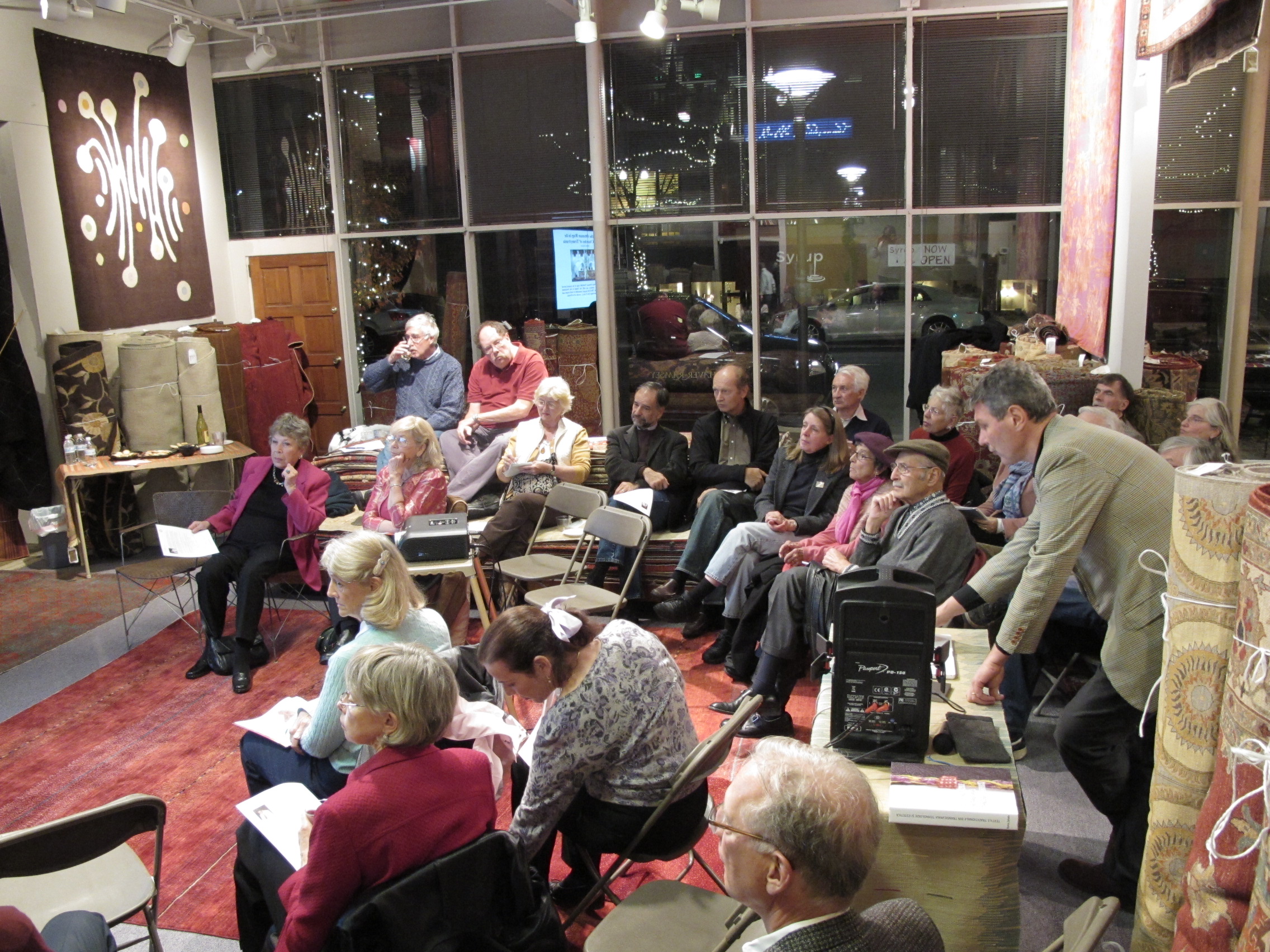 Peter Papp, who hosted the talk, posing to Stefano Ionescu a good question about the 'Transylvanian' rugsVisiting Jim Dixon's collection at Occidental, Northern California: much more than I was prepared to experience...
