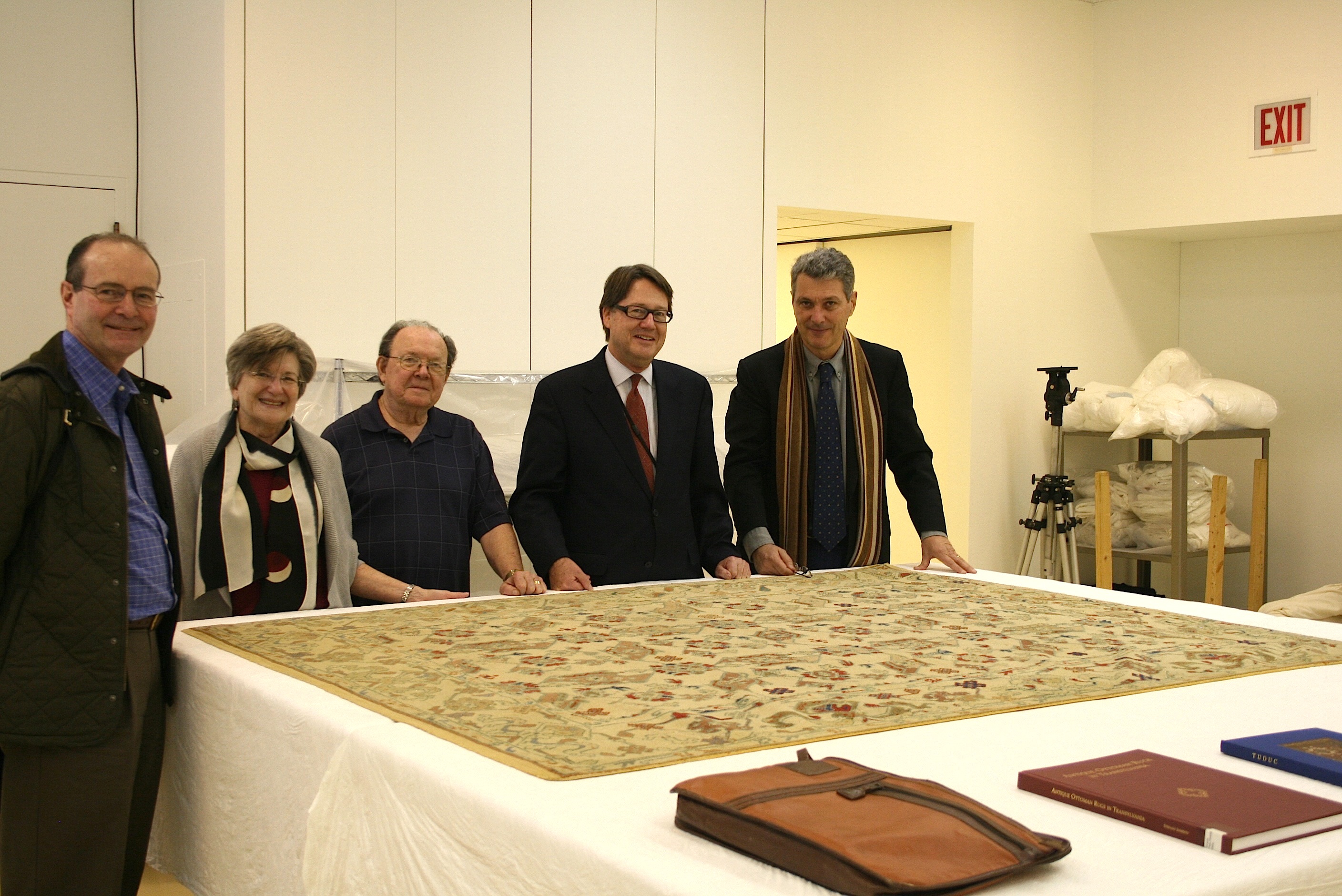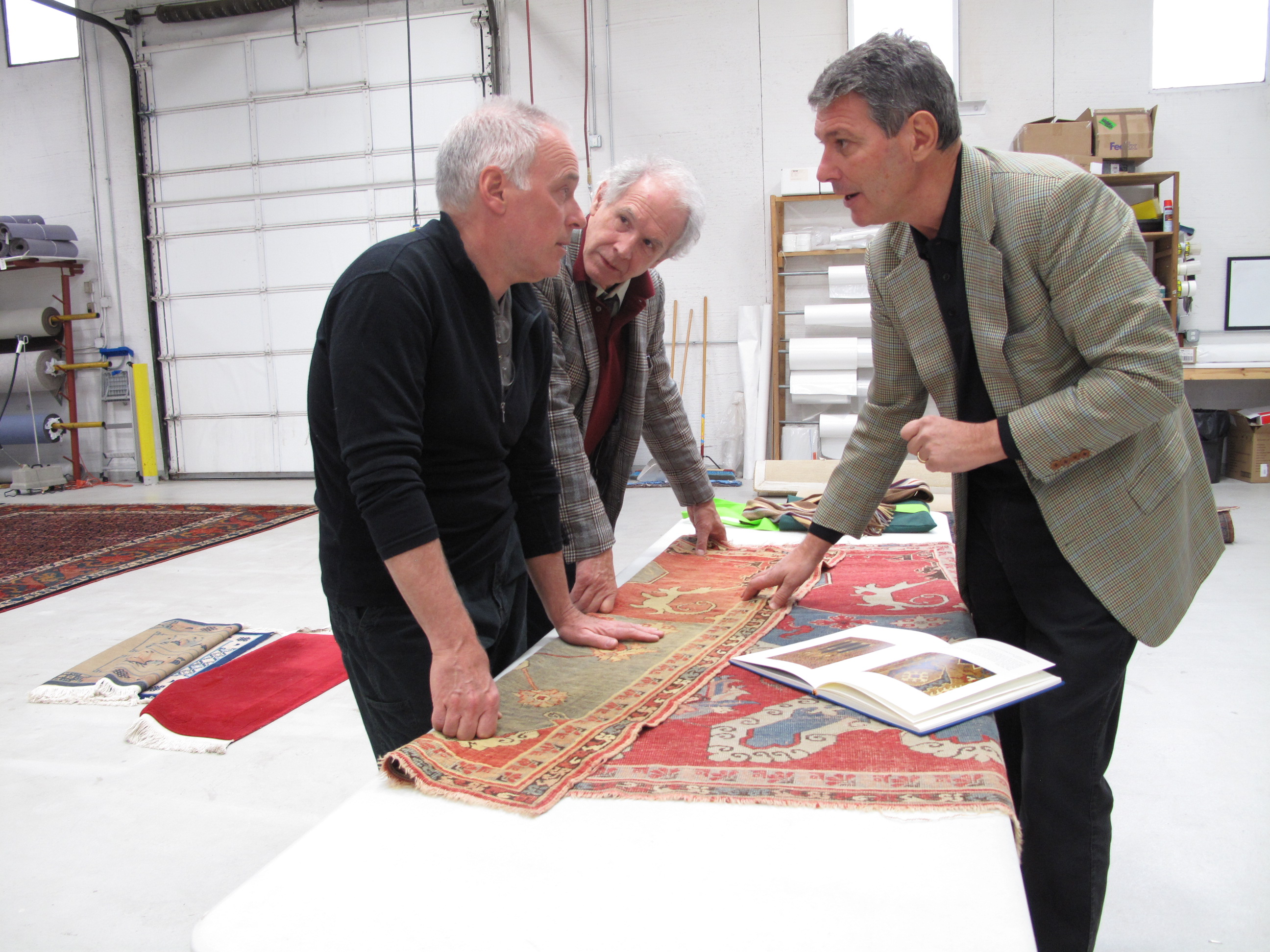 Robert Mann, Paul Ramsey and Stefano Ionescu discussing a Tuduc rug