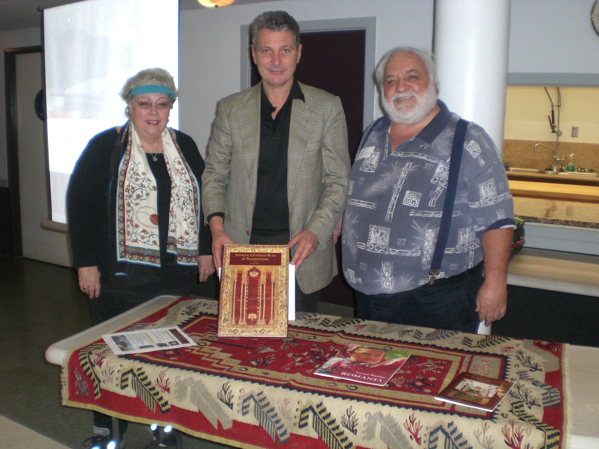 Linda Mansouri, president of the Textile Museum Associates of Southern California greeting the participants at the talkStefano Ionescu's best friends in LA: Cheri Hunter and Dennis Marquand Joyce Corbet, curtor of a wonderful exhibition at the Mingei Museum, San Diego: Folk Art Treasures of RomaniaVal Arab and Joyce Corbett: passion for textiles!
